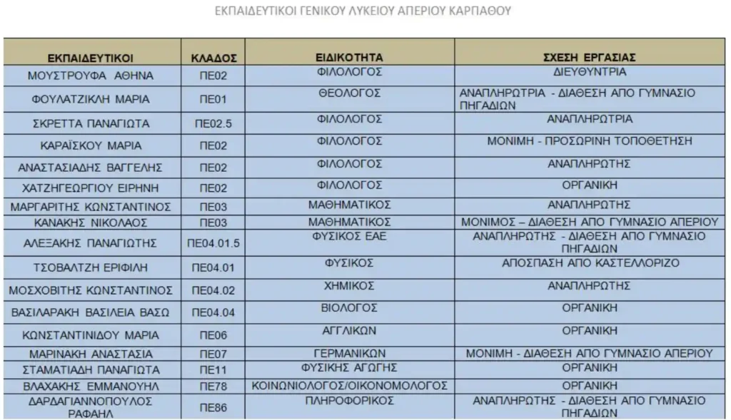 Εκπαιδευτικό Προσωπικό 2025-2026