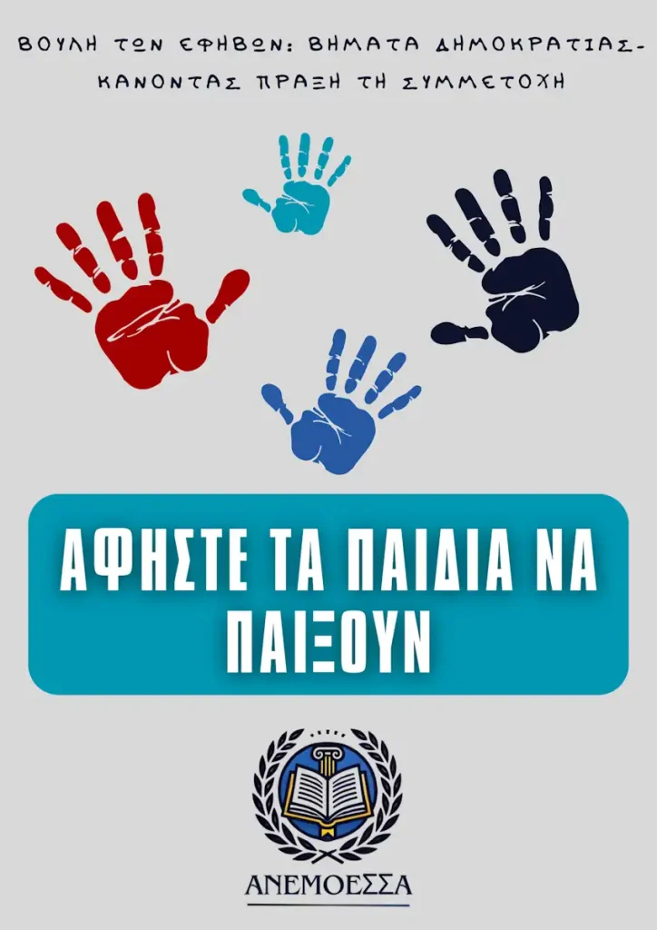 Έτσι, δημιούργησαν λογότυπο με το όνομα της ομάδας τους «ΑΝΕΜΟΕΣΣΑ», έφτιαξαν μια αφίσα για τα Δικαιώματα του Παιδιού και επισκέφτηκαν το Δήμο Καρπάθου όπου και συνομίλησαν με τον αντιδήμαρχο Παιδείας, Δια βίου μάθησης & Τουρισμού κ. Μηλιό Α., τον αντιδήμαρχο διοίκησης Οικονομικών, Οργάνωσης & Ψηφιακού Μετασχηματισμού κ. Πρωτόπαπα Ν. καθώς και τον Πρόεδρο του Δημοτικού Συμβουλίου κ. Κωνσταντινίδη Δ. Επίσης, κατά την ολοκλήρωση των οκτώ συναντήσεων που πραγματοποίησε η Ομάδα, δημιουργήθηκε ένα ερωτηματολόγιο με θέμα την ενδοοικογενειακή βία, το οποίο απαντήθηκε ανώνυμα από όλους/όλες σχεδόν τους μαθητές/τριες της σχολικής μονάδας. Τέλος, από την ψηφοφορία της Ομάδας Συμμετοχικής Δράσης, αναδείχθηκε, ως εκπρόσωπος του ΓΕΛ Απερίου Καρπάθου στις Εργασίες της ΚΘ΄ Συνόδου της Βουλής των Εφήβων, η έφηβη βουλεύτρια Σάβκοβιτς Ελπίδα από τη Β΄ Λυκείου με αναπληρωματικό μέλος τον μαθητή Έλ Λαουέντη Αμπντουλλάχ της Β΄ Λυκείου.